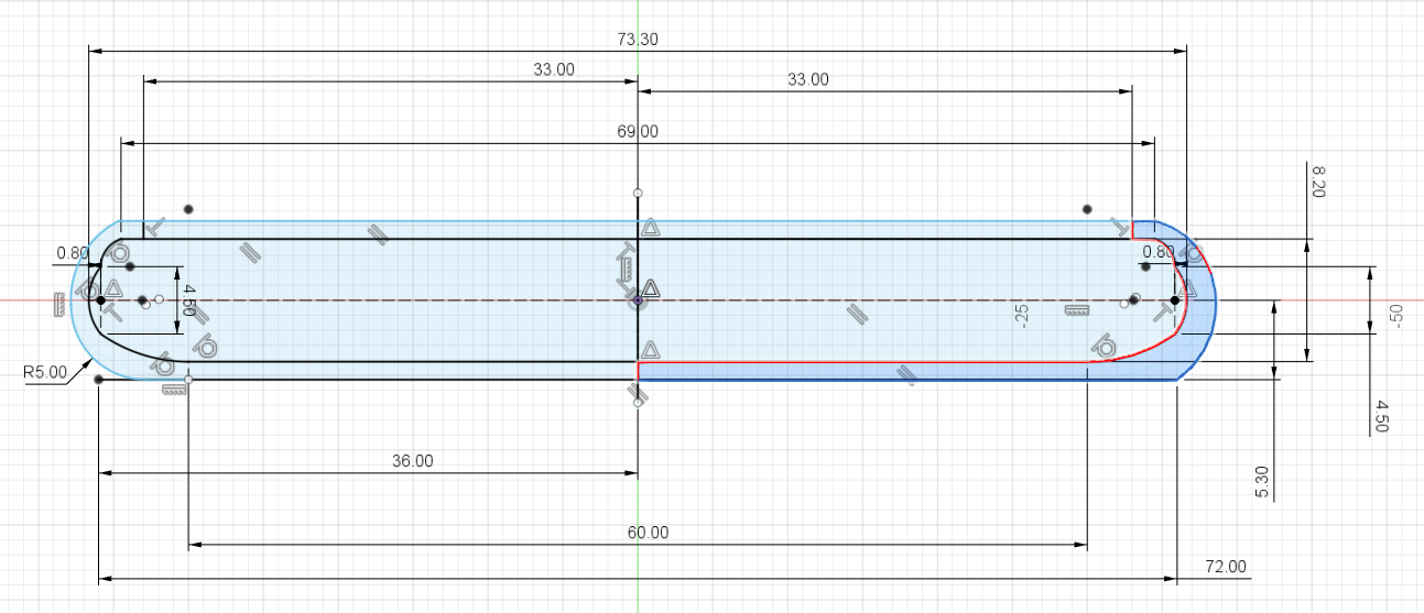 Je me suis mis à dessiner une coupe de la coque de mon téléphone pour ensuite faire un sweep (balayage) en suivant un chemin qui a la forme de mon téléphone.