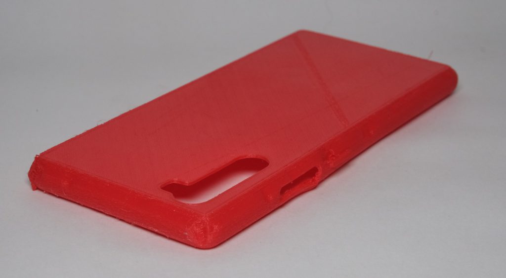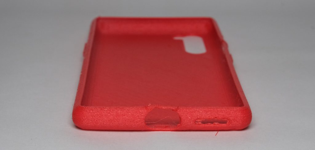 Mon deuxième essai a été plutôt concluant, l’épaisseur était bien et permettait d’avoir une coque qui tient bien au téléphone. Malgré quelques défauts (l’impression dans le vide n’est pas très propre) la coque reste utilisable et semble robuste.